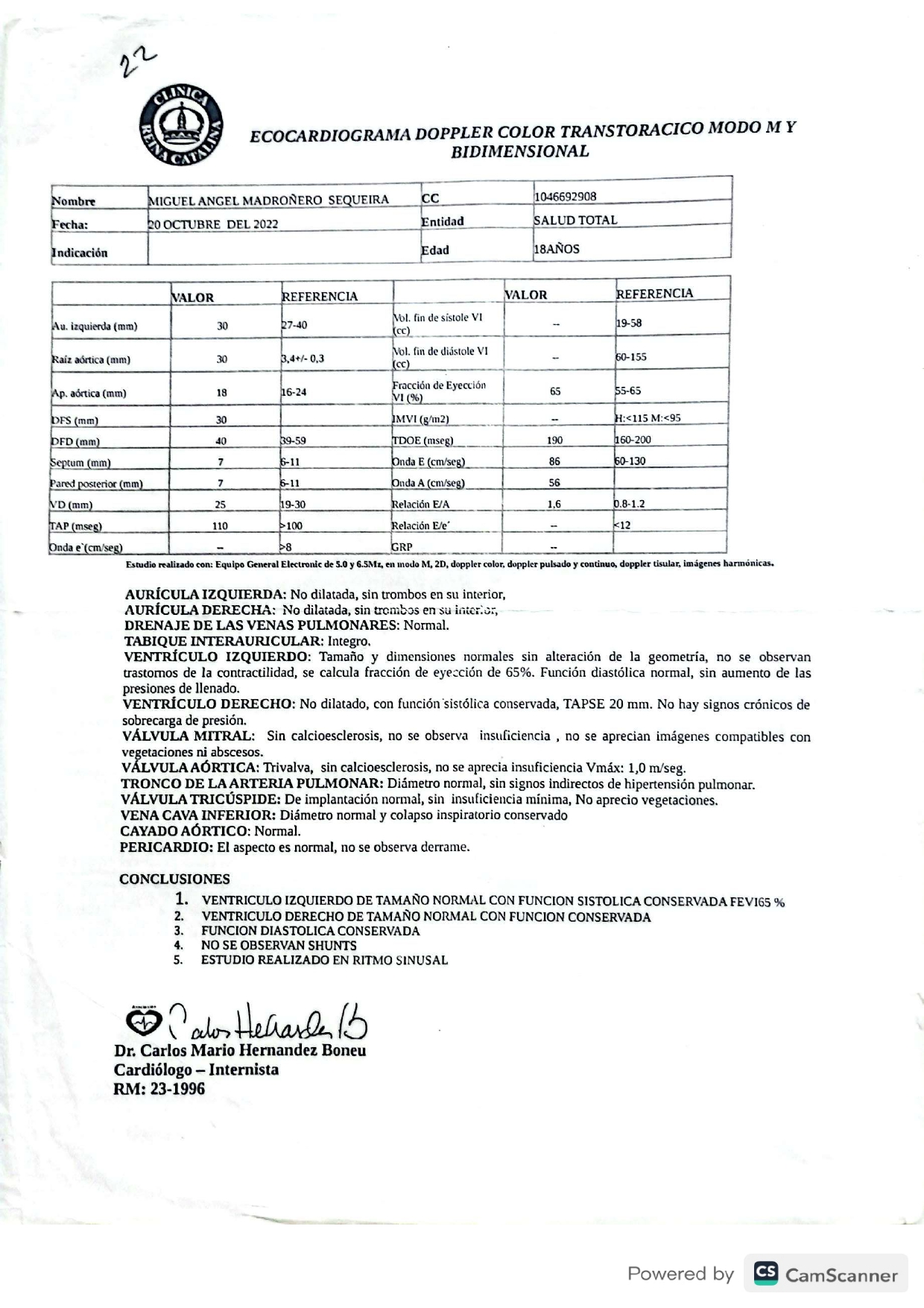 Ecocardiograma Doppler color transtorácico modo M y bidimensional