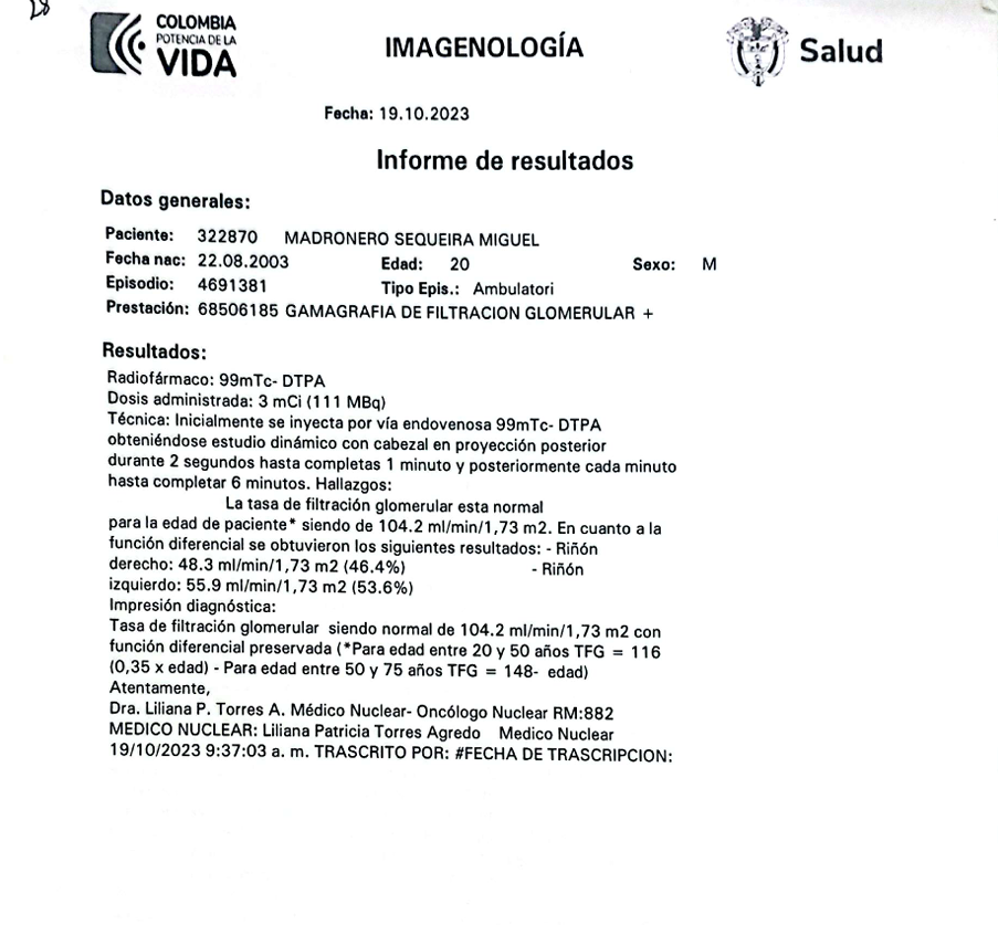 GAMAGRAFIA DE FILTRACION GLOMERULAR +