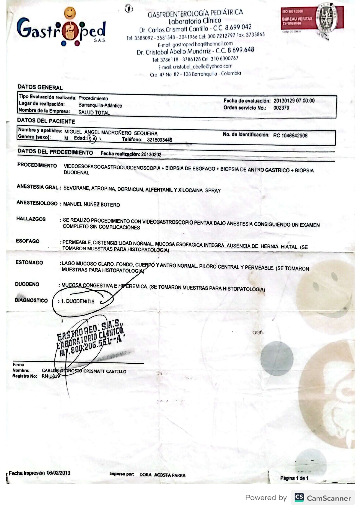 Videoesofagogastroduodenoscopia con biopsias